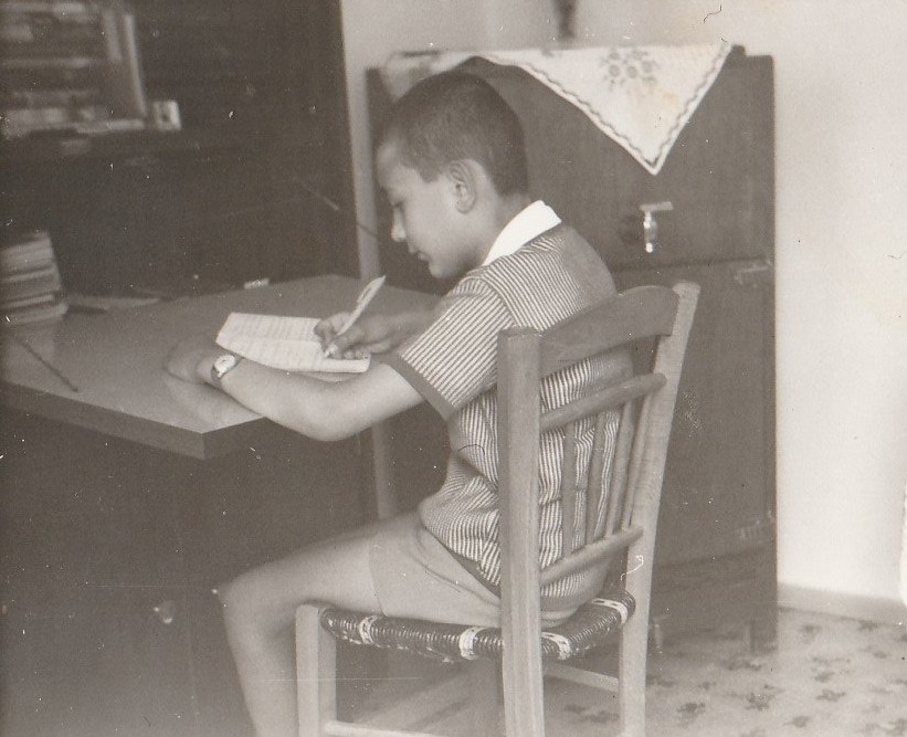 1964. Ο κουρεμένος με την ψιλή μαθητής είναι η αφεντιά μου. Κάνει πως μελετάει καθώς τον φωτογραφίζουν και καμαρώνει το πρώτο του ρολόι.